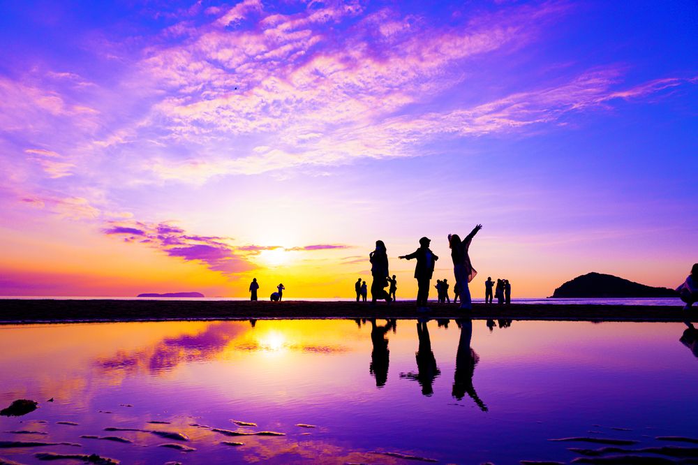 ウユニ塩湖のような美しい夕日が映る、香川県の絶景ビーチ