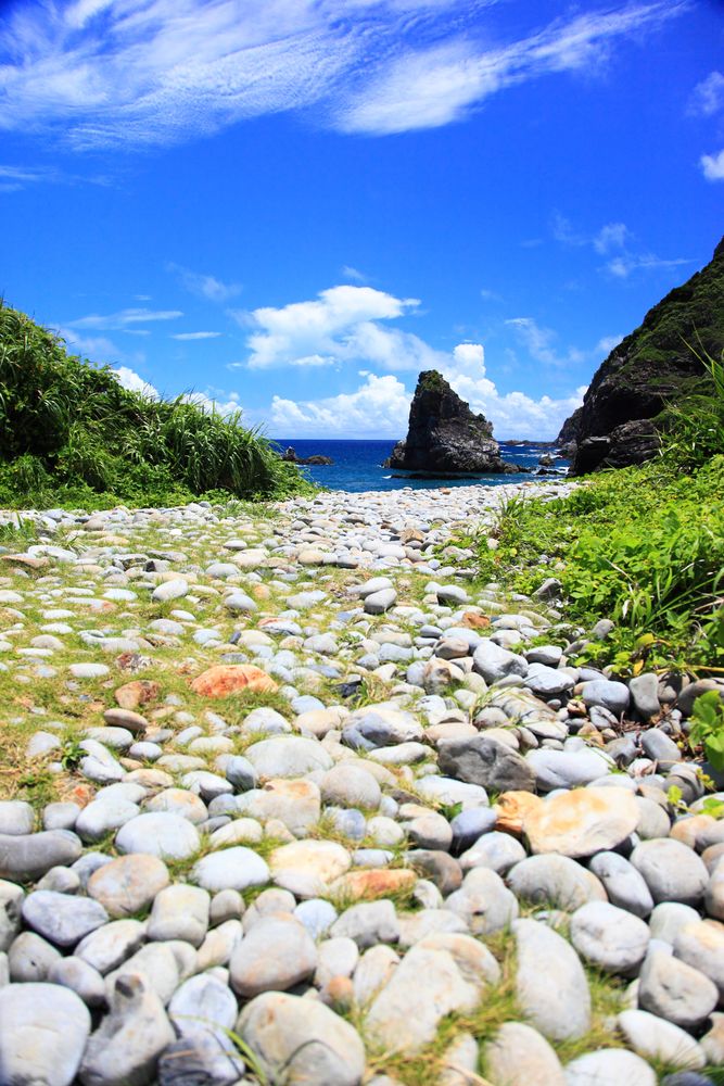 ゴロゴロとした丸石の浜辺が特徴の「ホノホシ海岸」
