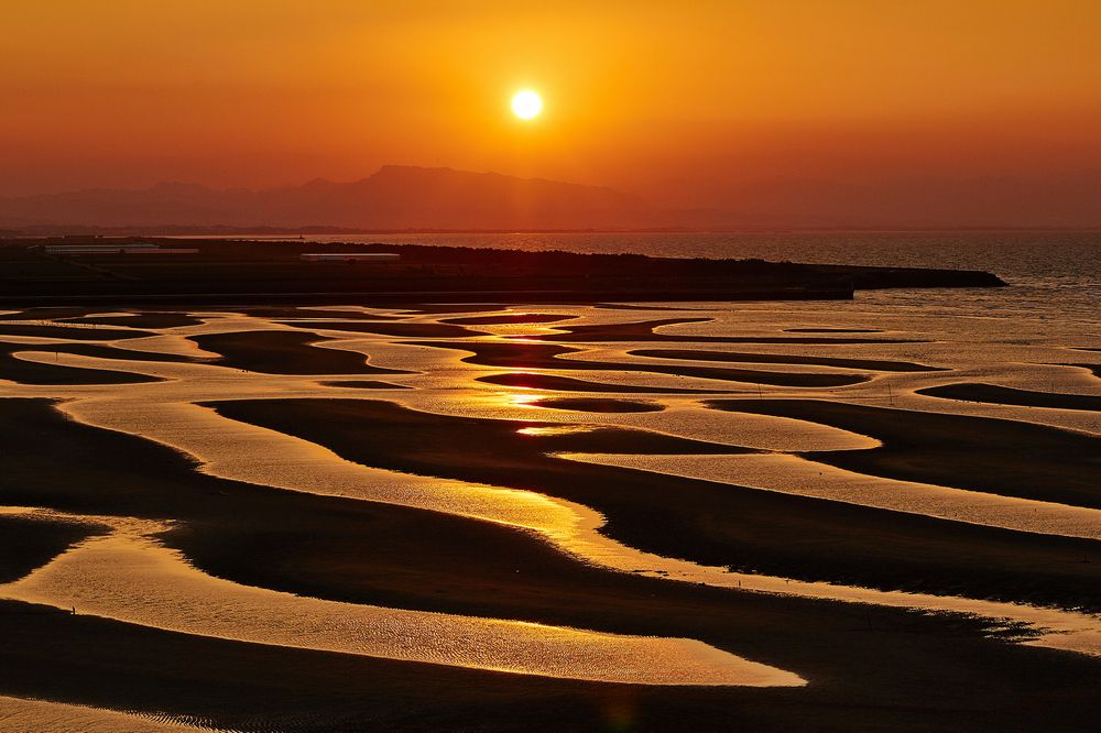宮島の鳥居と夕陽が織りなす絶景スポット「御笠浜」