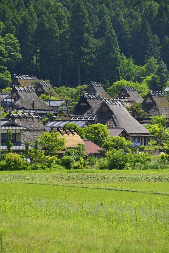 古き良き日本の風景が広がる、かやぶき屋根の美しい村