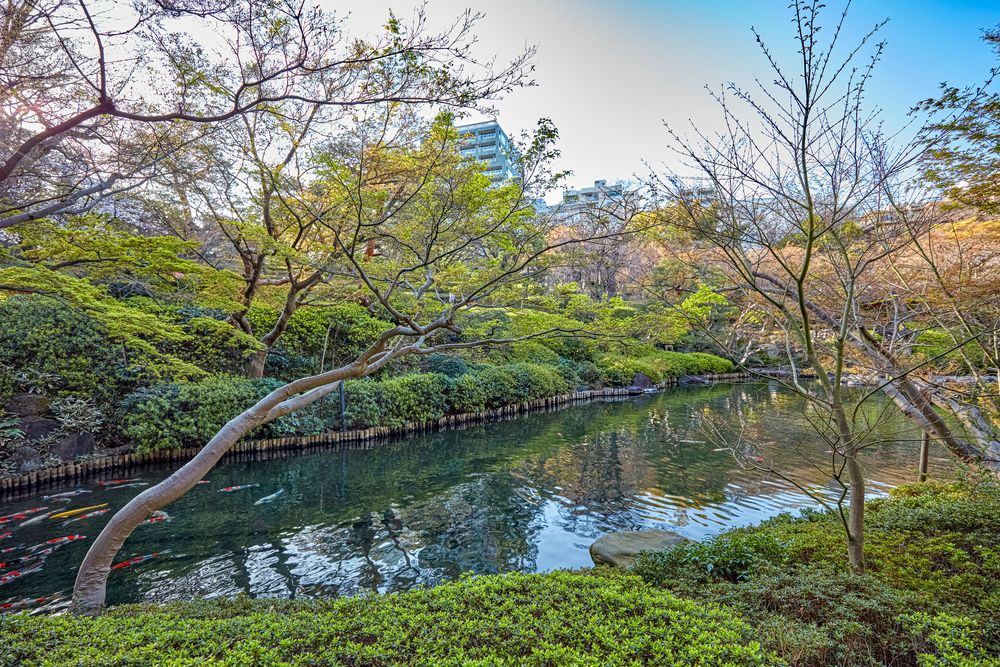 都会のオアシスで桜と紅葉を楽しむ日本庭園