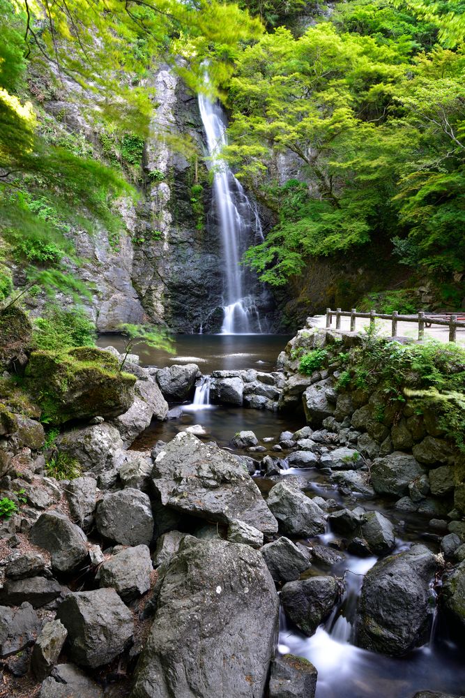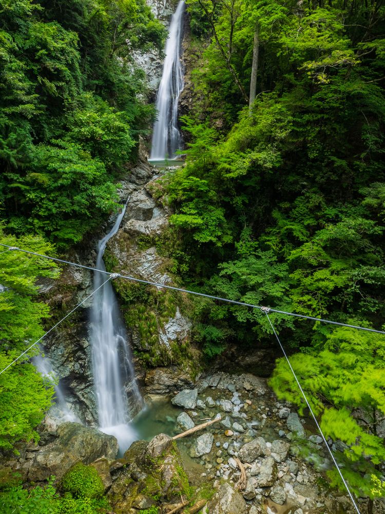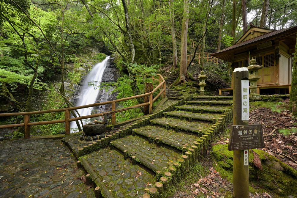 落差50mの迫力!虹がかかる美しい滝「蜻蛉の滝」